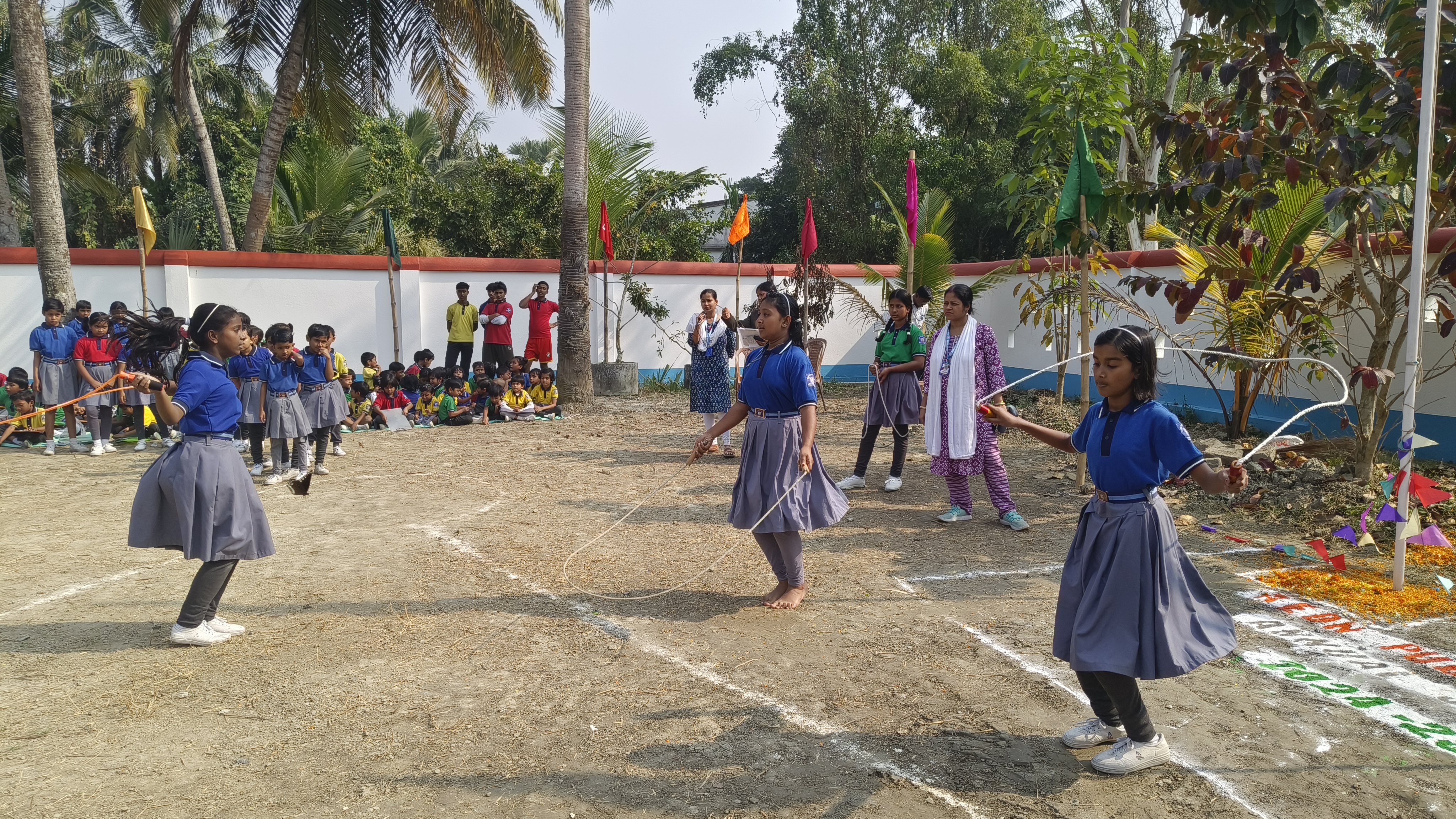Dedicated sports grounds, play areas, indoor games facility, swimming pool, and equipment for various sports activities.